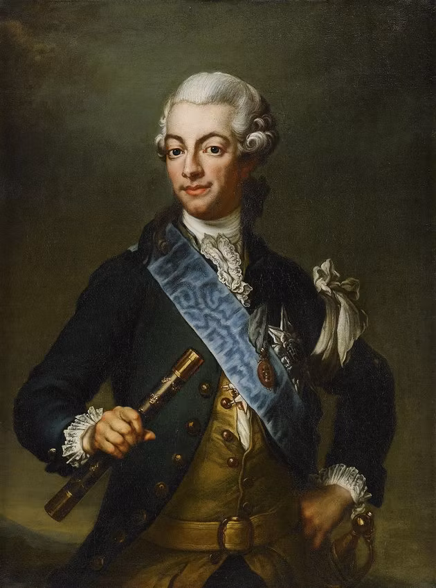 GUSTAV III I REVOLUTIONSUNIFORM av Jacob Björck 0 kr 240 kr Gustav III i revolutionsuniform, iklädd Livgardets blågula uniform med frihetsrevolutionens vita armbindel. Målat av Jacob Björck (1726-1793).Konsttryckt på duk i storlek 0,60 x 0,44 meter.