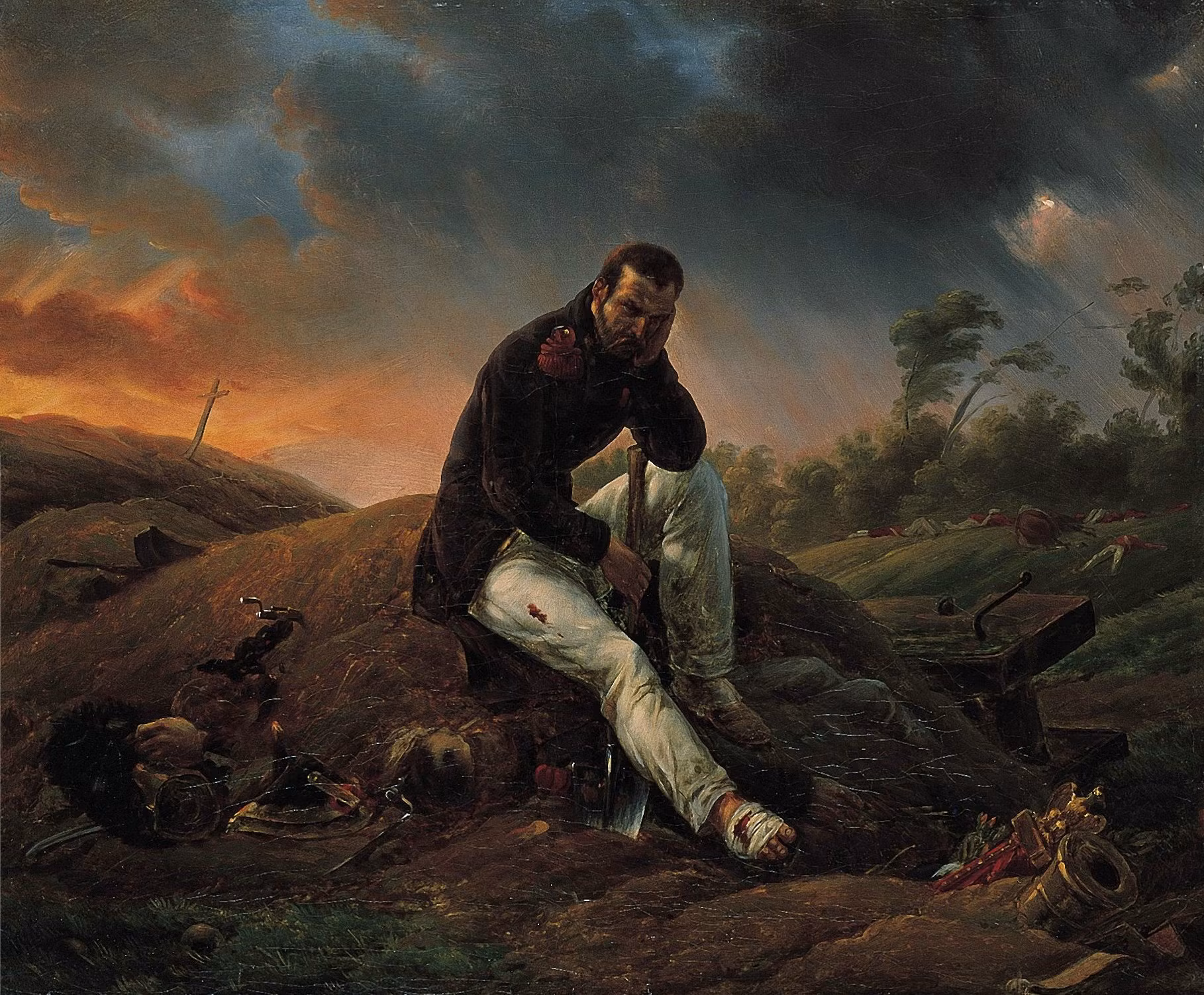 WATERLOO - DEN SISTE GRENADJÄREN av Emile Jean Horace Vernet 0 kr 230 kr Bilden visar en ensam och sorgsen fransk soldat kvällen den 18 juni 1815 efter Napoleons nederlag vid Waterloo.Målat av Emile Jean Horace Vernet (1789-1863).Konsttryckt på duk i storlek 0,49 x 0,60 meter.