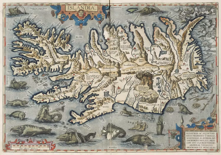 ISLAND av ABRAHAM ORTELIUS 1592 0 kr 175 kr Karta över "vikingaön" Island 1592. Av den flamländsk-belgiske arkeologen Abraham Ortelius (1527-1598).Konsttryckt på satin 150 gram/m2 konstpapper i storlek 0,56 x 0,80 meter.