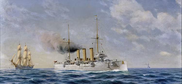 PANSARKRYSSARE HMS FYLGIA OCH MS SAGA av marinmålaren, konteramiral Jacob Hägg (1839-1931).