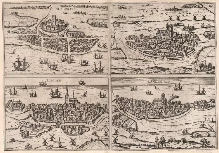 HELSINGBORG LUND MALMÖ LANDSKRONA 1588 av GEORG BRAUN & FRANZ HOGENBERG 0 kr 175 kr Helsingborg, Lund, Elbogen (Malmö) och Landskrona. Ritad av Georg Braun (1541-1622) och Franz Hogenberg (1539-1590). Publicerad av Peter von Brachel.Konsttryckt på satin 150 gram/m2 konstpapper i storlek 0,59 x 0,84 meter.